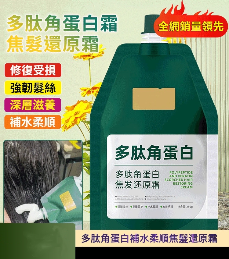 【角蛋白焦髮還原霜】多肽角蛋白霜焦發還原霜,修復受捐強韌髮絲深層滋養捕水柔順!